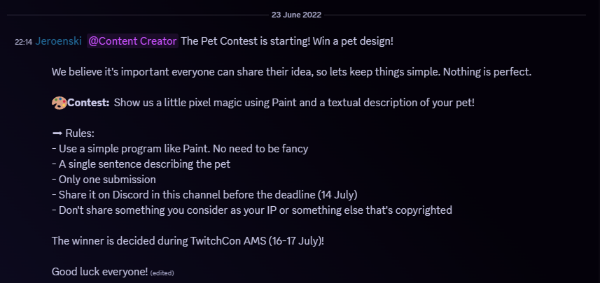 Our art submission contest was back in 2022, before the AI hype, which means AI-generated work would not have qualified as a valid submission. We wanted everyone to start drawing and to appreciate how difficult it is to do it extremely well, like our pixel art pets.